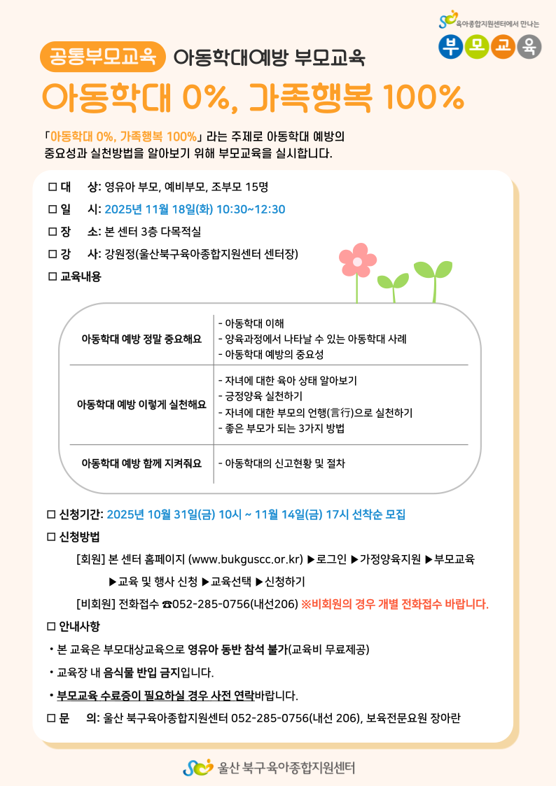 [°øÅëºÎ¸ð±³À°] ¾Æµ¿Çд뿹¹æ ºÎ¸ð±³À°(¾Æµ¿Çдë 0%, °¡Á·Çູ 100%)