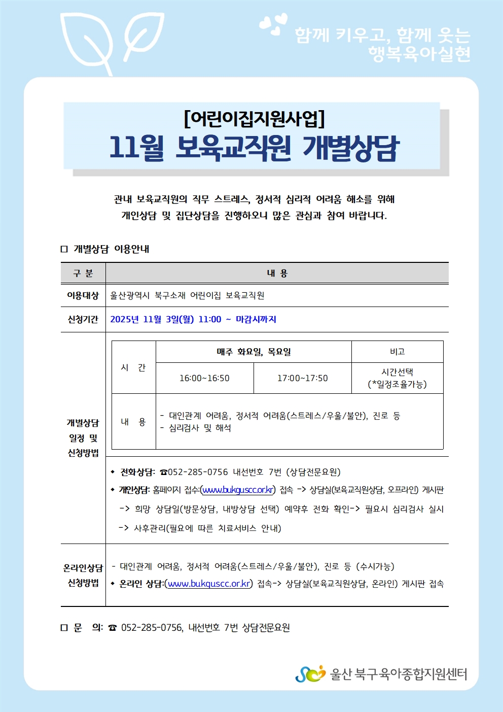 11¿ù º¸À°±³Á÷¿ø »ó´ã ¾È³»