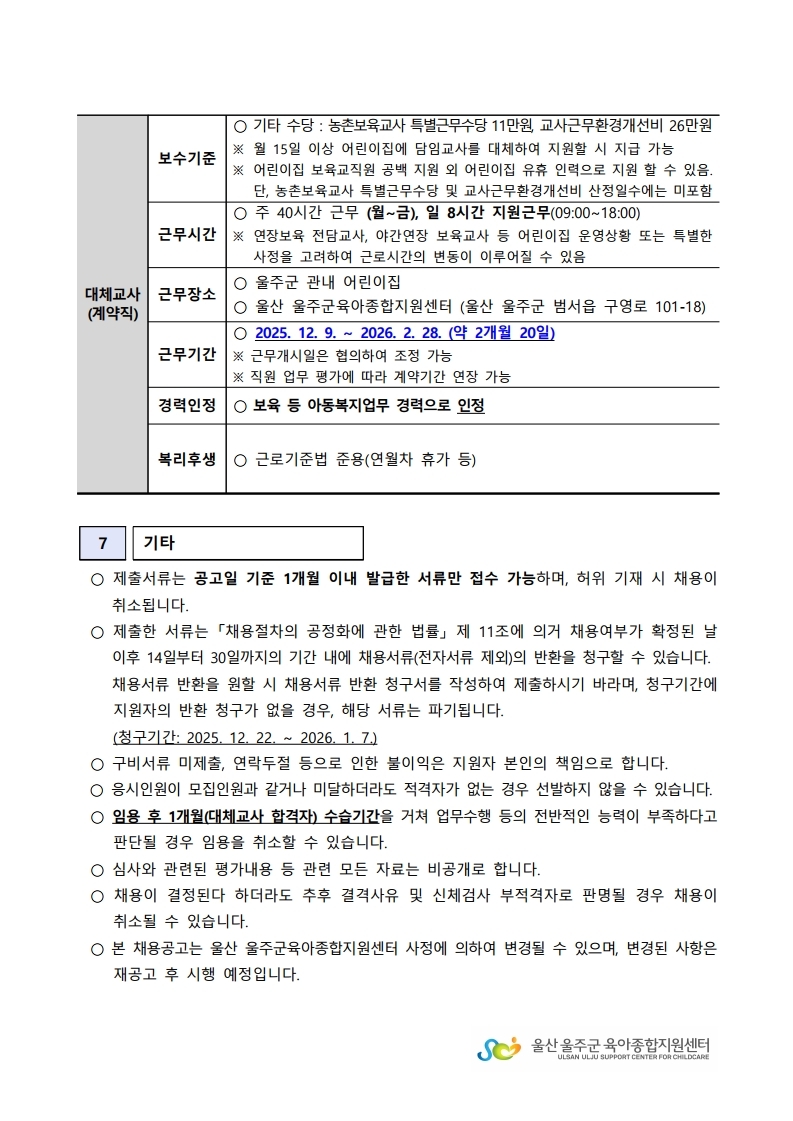 [ä¿ë°ø°í] ¿ï»ê ¿ïÁÖ±ºÀ°¾ÆÁ¾ÇÕÁö¿ø¼¾ÅÍ Á÷¿ø(´ëü±³»ç) ä¿ë°ø°í