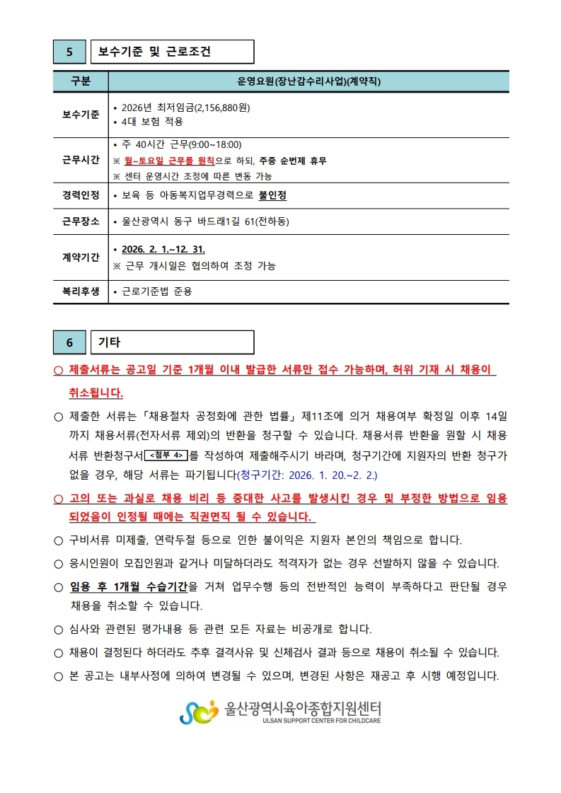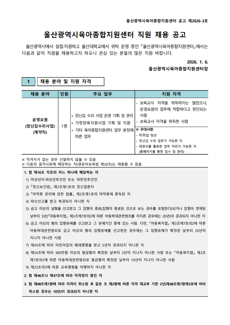 [ä¿ë°ø°í] ¿ï»ê±¤¿ªÀ°¾ÆÁ¾ÇÕÁö¿ø¼¾ÅÍ Á÷¿ø(¿î¿µ¿ä¿ø) °ø°í