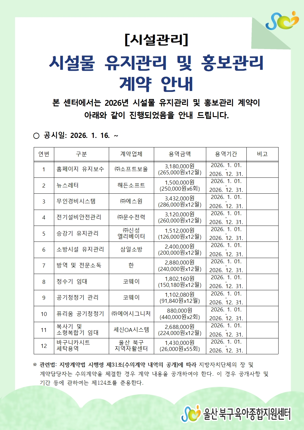 [½Ã¼³°ü¸®] ½Ã¼³¹° À¯Áö°ü¸® ¹× È«º¸°ü¸® °è¾à ¾È³»