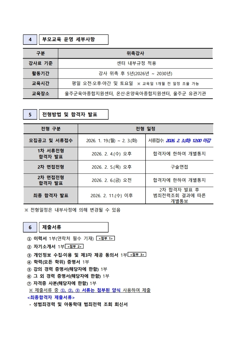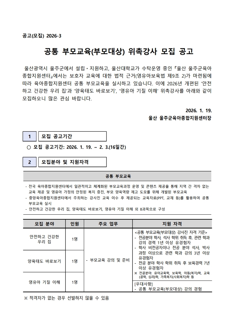 [¸ðÁý°ø°í] ¿ï»ê ¿ïÁÖ±ºÀ°¾ÆÁ¾ÇÕÁö¿ø¼¾ÅÍ °øÅë ºÎ¸ð±³À°(ºÎ¸ð´ë»ó) À§Ã˰»ç ¸ðÁý°ø°í