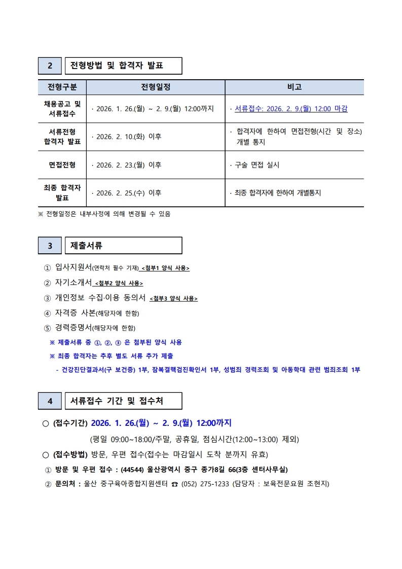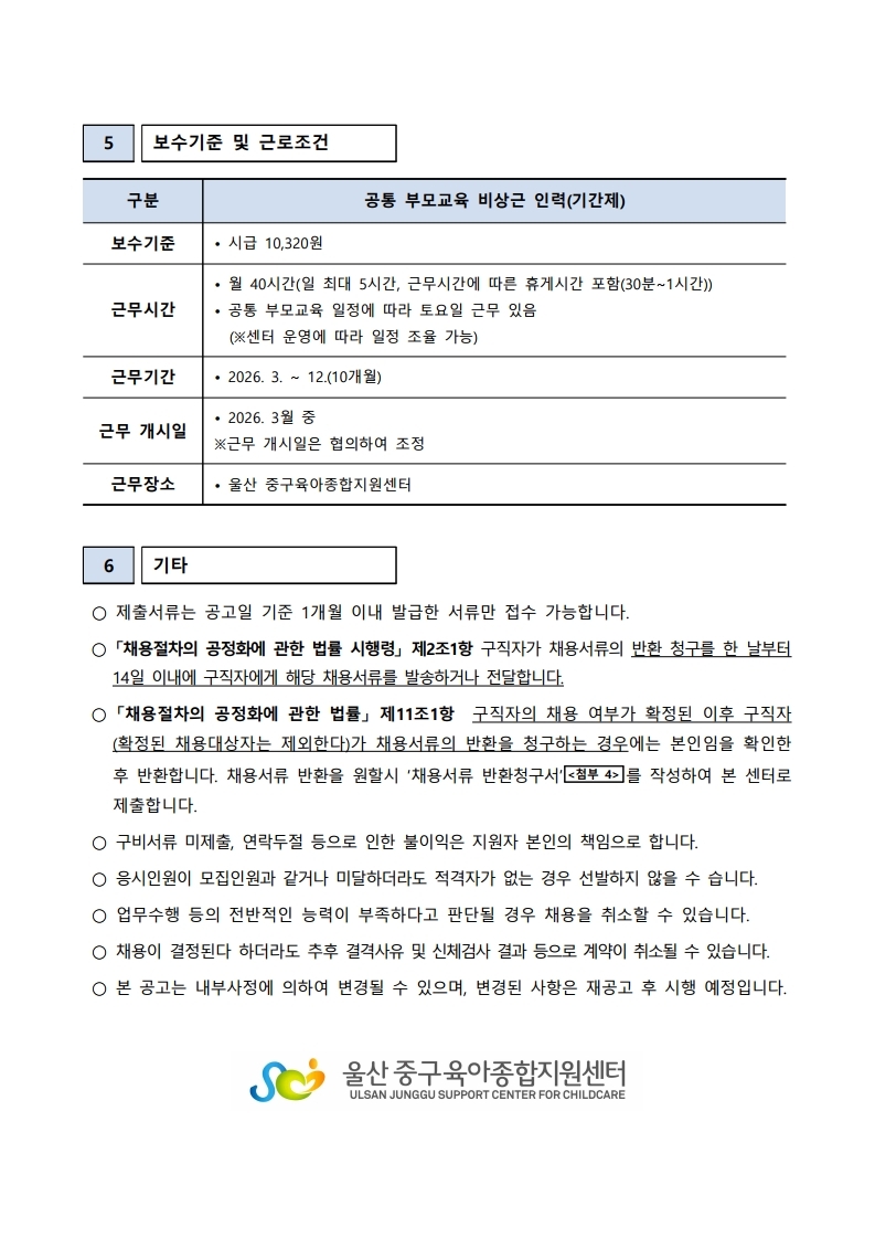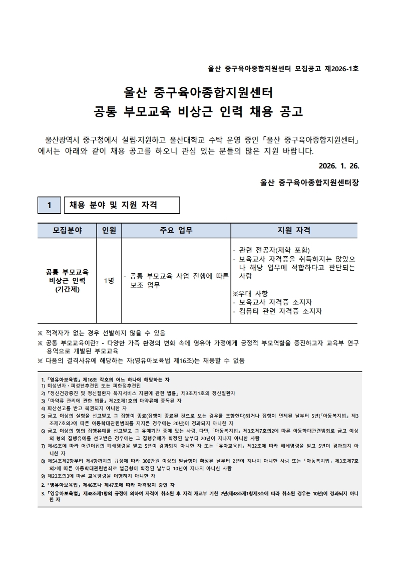 [ä¿ë°ø°í] ¿ï»ê Áß±¸À°¾ÆÁ¾ÇÕÁö¿ø¼¾ÅÍ °øÅë ºÎ¸ð±³À° ºñ»ó±Ù Àη ä¿ë °ø°í