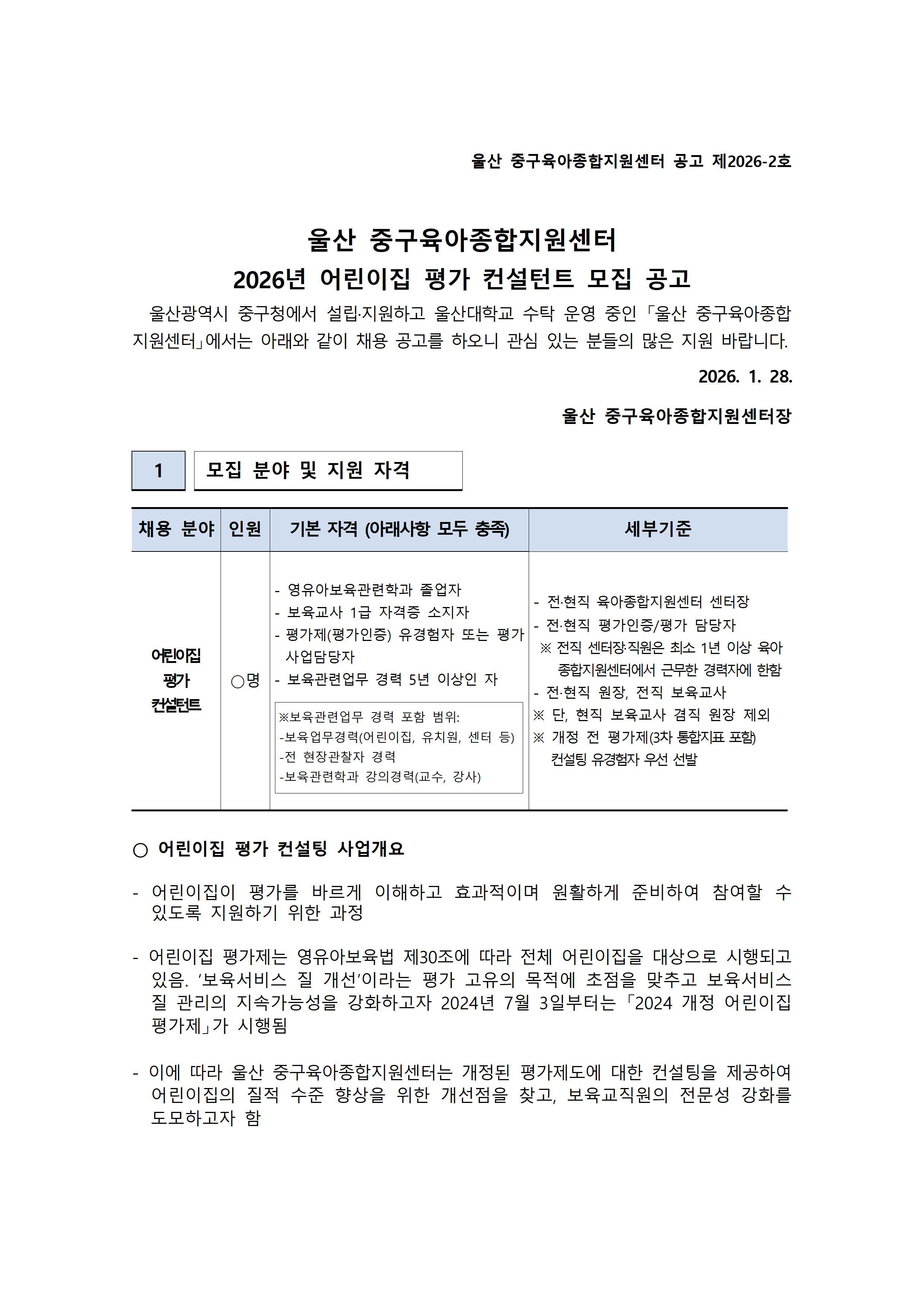 [ºÙÀÓ1] ¿ï»ê Áß±¸À°¾ÆÁ¾ÇÕÁö¿ø¼¾ÅÍ ¾î¸°ÀÌÁý Æò°¡ ÄÁ¼³ÅÏÆ® ¸ðÁý °ø°í(Á¦2026-2È£).pdf