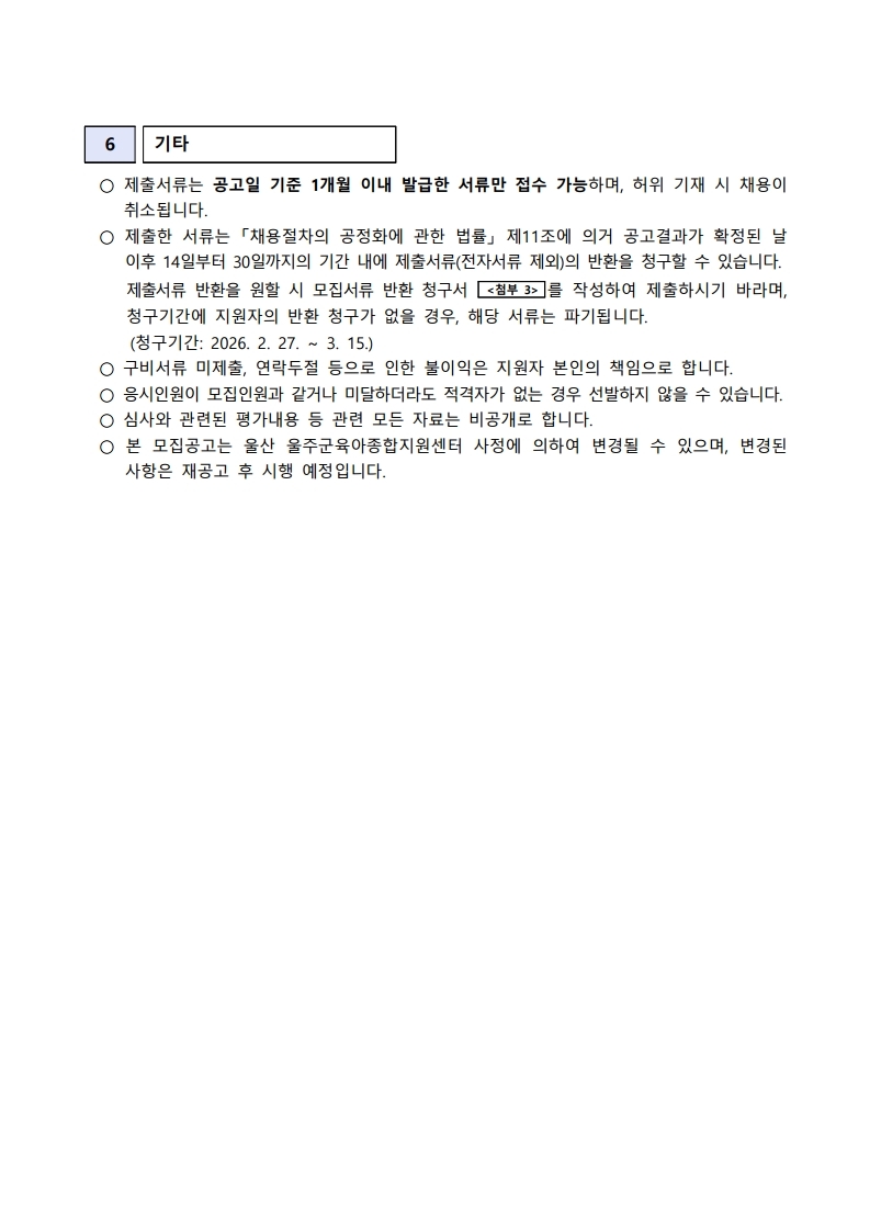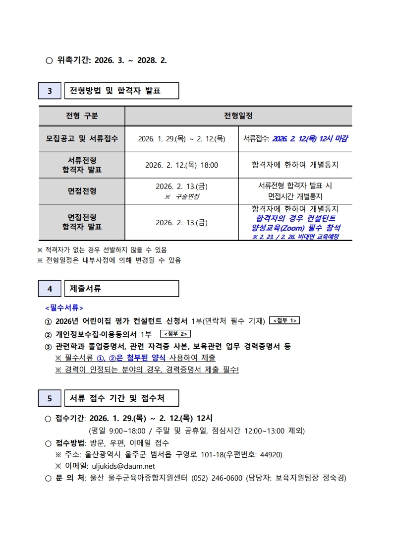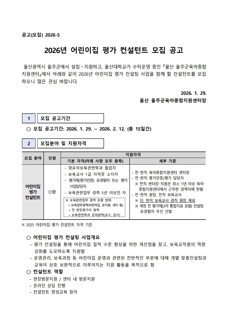 [ä¿ë°ø°í] ¿ï»ê ¿ïÁÖ±ºÀ°¾ÆÁ¾ÇÕÁö¿ø¼¾ÅÍ 2026³â ¾î¸°ÀÌÁý Æò°¡ ÄÁ¼³ÅÏÆ® ¸ðÁý ä¿ë°ø°í
