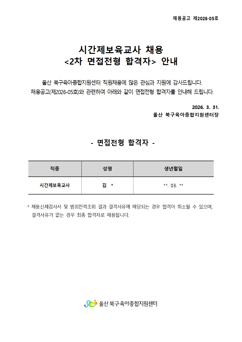 º» ¼¾ÅÍ ½Ã°£Á¦º¸À°±³»ç ä¿ë <2Â÷ ¸éÁ¢ÀüÇü ÇÕ°ÝÀÚ> ¾È³»