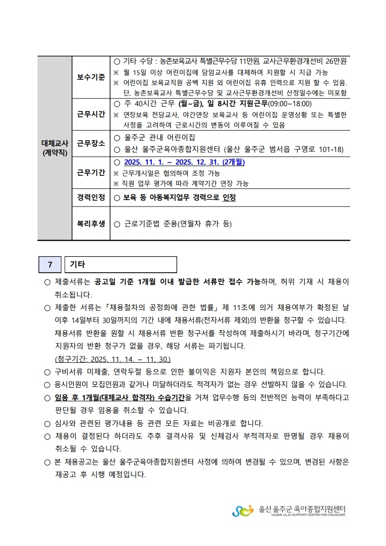 [ä¿ë°ø°í] ¿ï»ê ¿ïÁÖ±ºÀ°¾ÆÁ¾ÇÕÁö¿ø¼¾ÅÍ Á÷¿ø(´ëü±³»ç) ä¿ë º¯°æ°ø°í