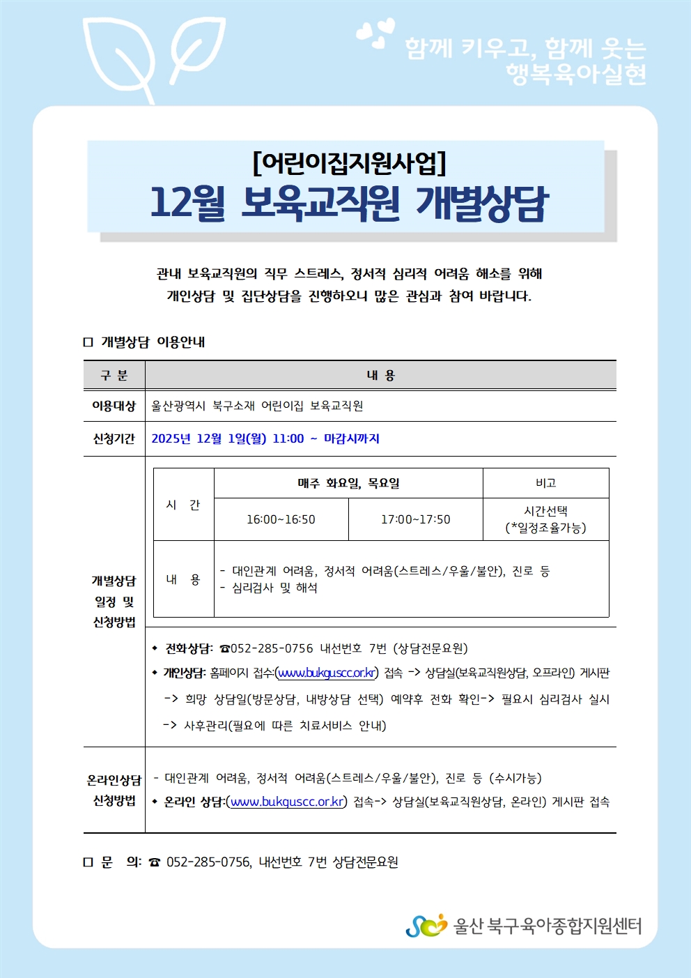 12¿ù º¸À°±³Á÷¿ø »ó´ã ¾È³»