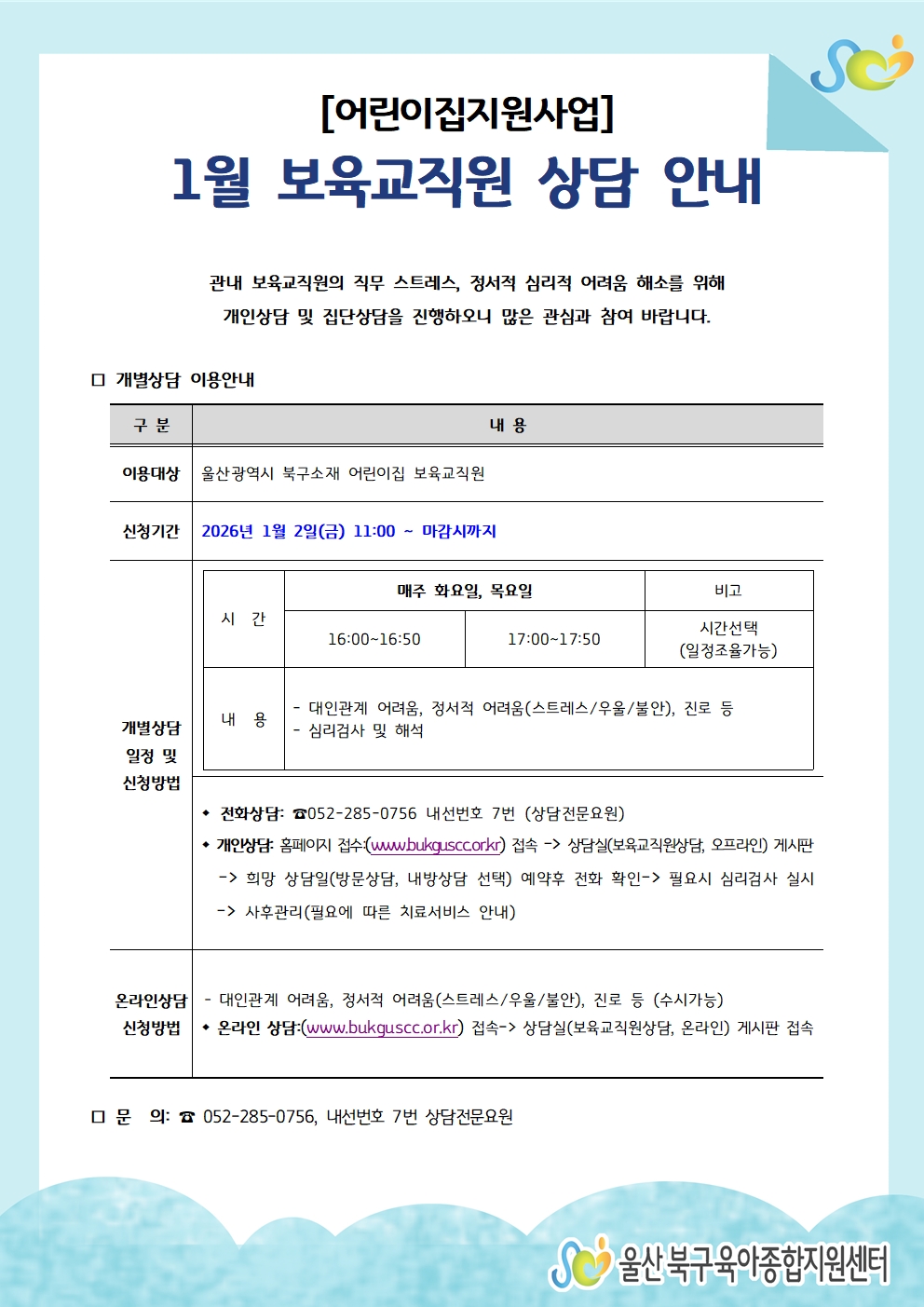 1¿ù º¸À°±³Á÷¿ø »ó´ã ¾È³»