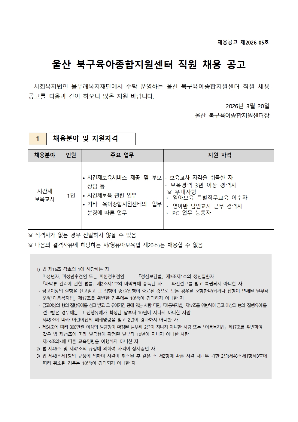 [ºÙÀÓ1] ¿ï»ê ºÏ±¸ À°¾ÆÁ¾ÇÕÁö¿ø¼¾ÅÍ Á÷¿ø ä¿ë °ø°í¹® Á¦2026-05È£.pdf