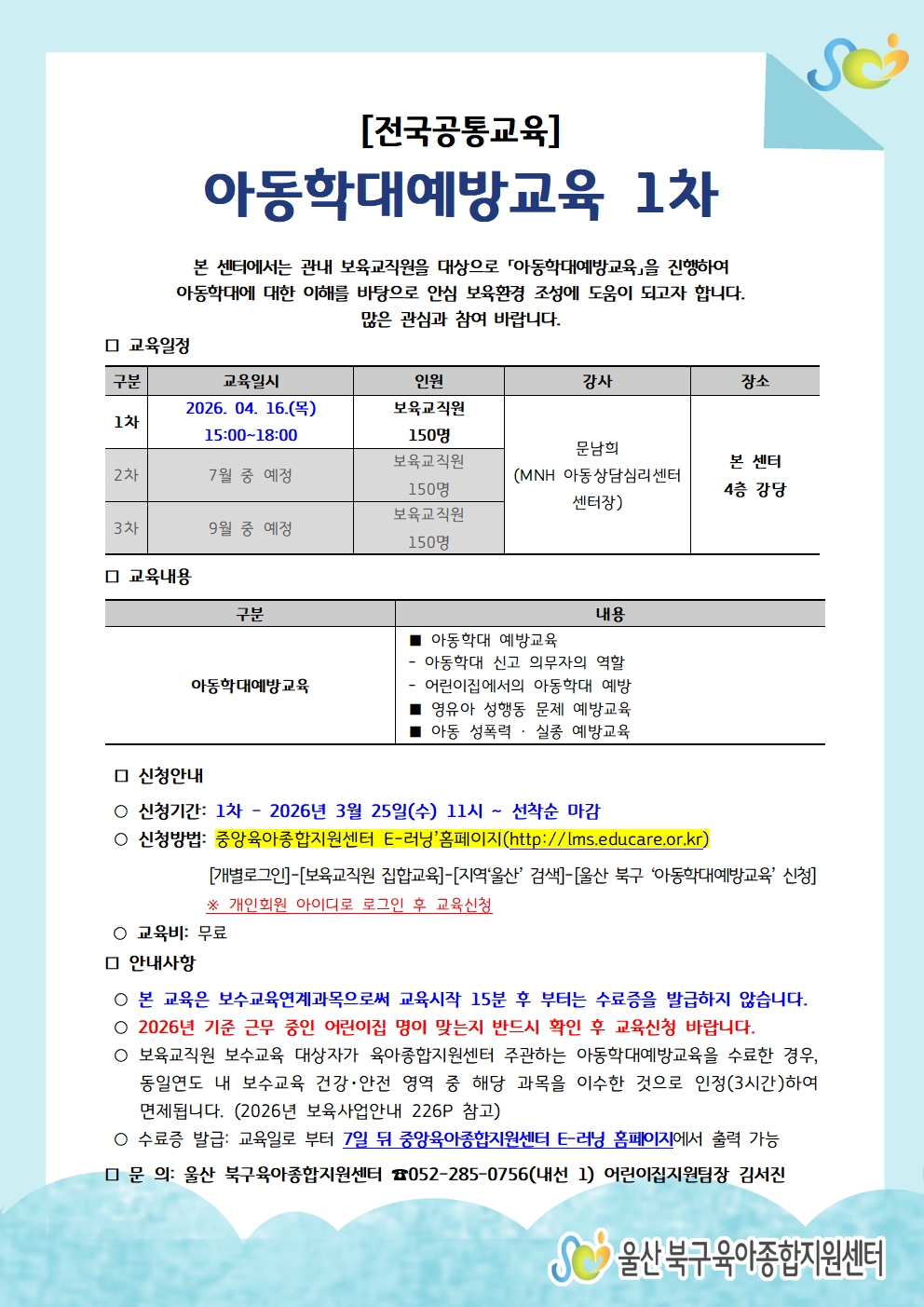 ¿¬°£ º¸À°±³Á÷¿ø±³À° ¾È³»