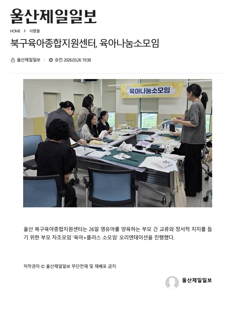 [¿ï»êÁ¦ÀÏÀϺ¸] ºÏ±¸À°¾ÆÁ¾ÇÕÁö¿ø¼¾ÅÍ, À°¾Æ³ª´®¼Ò¸ðÀÓ