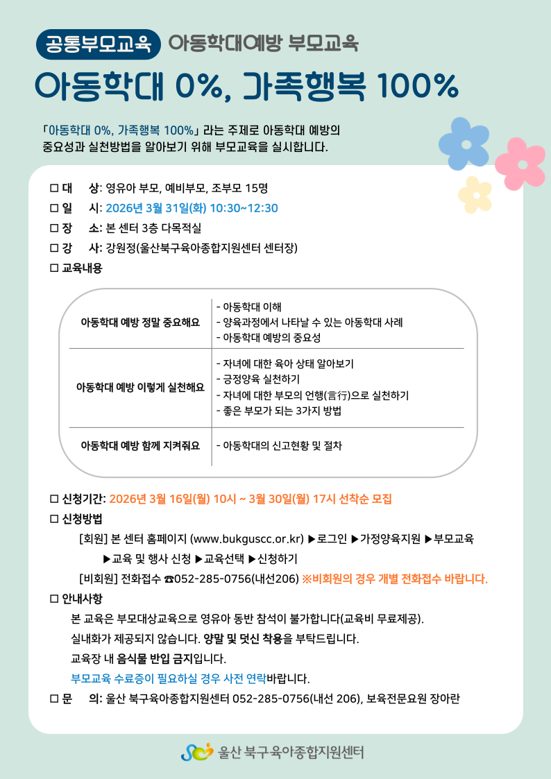 | [°øÅëºÎ¸ð±³À°] ¾Æµ¿Çд뿹¹æ ºÎ¸ð±³À°(¾Æµ¿Çдë 0%, °¡Á·Çູ 100%) | |||