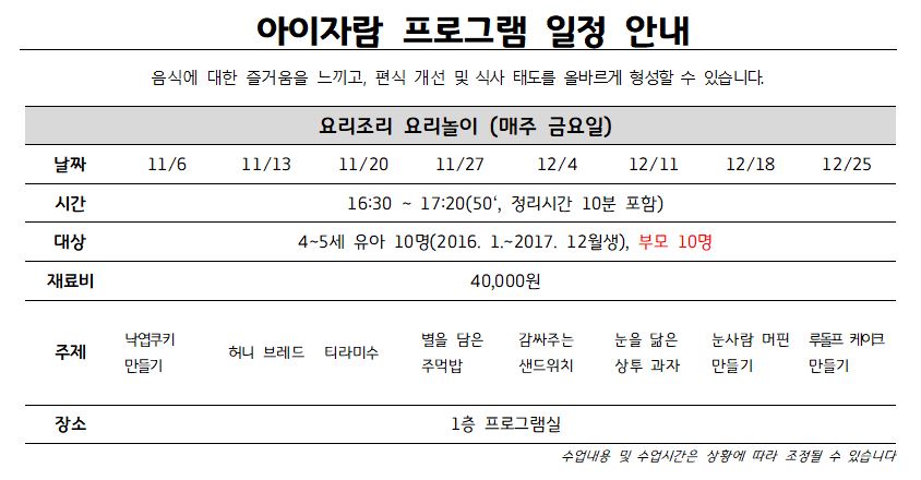 | ±âŸ»çÇ× | ¨ç4~5¼¼ À¯¾Æ¿Í ºÎ¸ð°¡ ÇÔ²² Âü¿© °¡´ÉÇÕ´Ï´Ù. ¨èÂü°¡ºñ °áÁ¦´Â ÇÁ·Î±×·¥ ù ³¯ Ä«µå°áÁ¦ÇÕ´Ï´Ù. ¨éÀç·áºñ´Â ȸ´ç 5,000x8ȸ 40,000¿øÀÔ´Ï´Ù. ¨ê12¿ù25ÀÏ Å©¸®½º¸¶½º ÃßÈÄ º¸° ¿¹Á¤ÀÔ´Ï´Ù. |