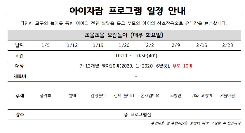 | ±âŸ»çÇ× | ¨ç7~12°³¿ù ¿µ¾Æ¿Í ºÎ¸ð°¡ ÇÔ²² Âü¿© °¡´ÉÇÕ´Ï´Ù. ¨èÂü°¡ºñ °áÁ¦´Â ÇÁ·Î±×·¥ ù ³¯ Ä«µå°áÁ¦ÇÕ´Ï´Ù. *Äڷγª19 È®»ê »óȲ¿¡ µû¶ó ÇÁ·Î±×·¥ÀÌ º¯°æµÇ°Å³ª Ãë¼ÒµÉ ¼ö ÀÖ½À´Ï´Ù. *»çȸÀû °Å¸®µÎ±â ¿¬Àå¿¡ µû¶ó 1¿ù 17ÀϱîÁö ÈÞ°ÀÔ´Ï´Ù. |