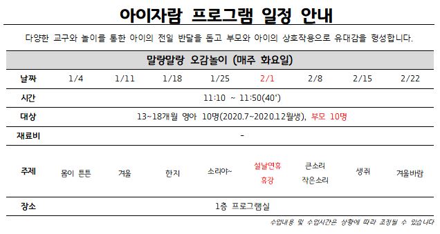 | ±âŸ»çÇ× | ¨ç13~18°³¿ù ¿µ¾Æ¿Í ºÎ¸ð°¡ ÇÔ²² Âü¿© °¡´ÉÇÕ´Ï´Ù. ¨èÂü°¡ºñ °áÁ¦´Â ÇÁ·Î±×·¥ ù ³¯ Ä«µå°áÁ¦ÇÕ´Ï´Ù. *Äڷγª19 È®»ê »óȲ¿¡ µû¶ó ÇÁ·Î±×·¥ÀÌ º¯°æµÇ°Å³ª Ãë¼ÒµÉ ¼ö ÀÖ½À´Ï´Ù. |