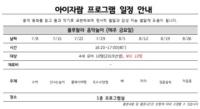 | ±âŸ»çÇ× | ¨ç4¼¼ ¿µ¾Æ¿Í ºÎ¸ð°¡ ÇÔ²² Âü¿© °¡´ÉÇÕ´Ï´Ù. ¨èÂü°¡ºñ °áÁ¦´Â ÇÁ·Î±×·¥ ù ³¯ Ä«µå°áÁ¦ÇÕ´Ï´Ù. *Äڷγª19 È®»ê »óȲ¿¡ µû¶ó ÇÁ·Î±×·¥ÀÌ º¯°æµÇ°Å³ª Ãë¼ÒµÉ ¼ö ÀÖ½À´Ï´Ù. |