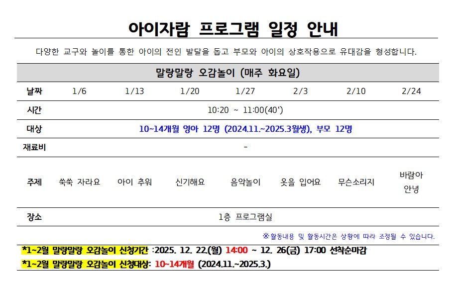 | ±âŸ»çÇ× | ¨ç 10~14°³¿ù ¿µ¾Æ¿Í ºÎ¸ð°¡ ÇÔ²² Âü¿© °¡´ÉÇÕ´Ï´Ù. ¨è Âü°¡ºñ °áÁ¦´Â ÇÁ·Î±×·¥ ù ³¯ Ä«µå°áÁ¦ÇÕ´Ï´Ù. |