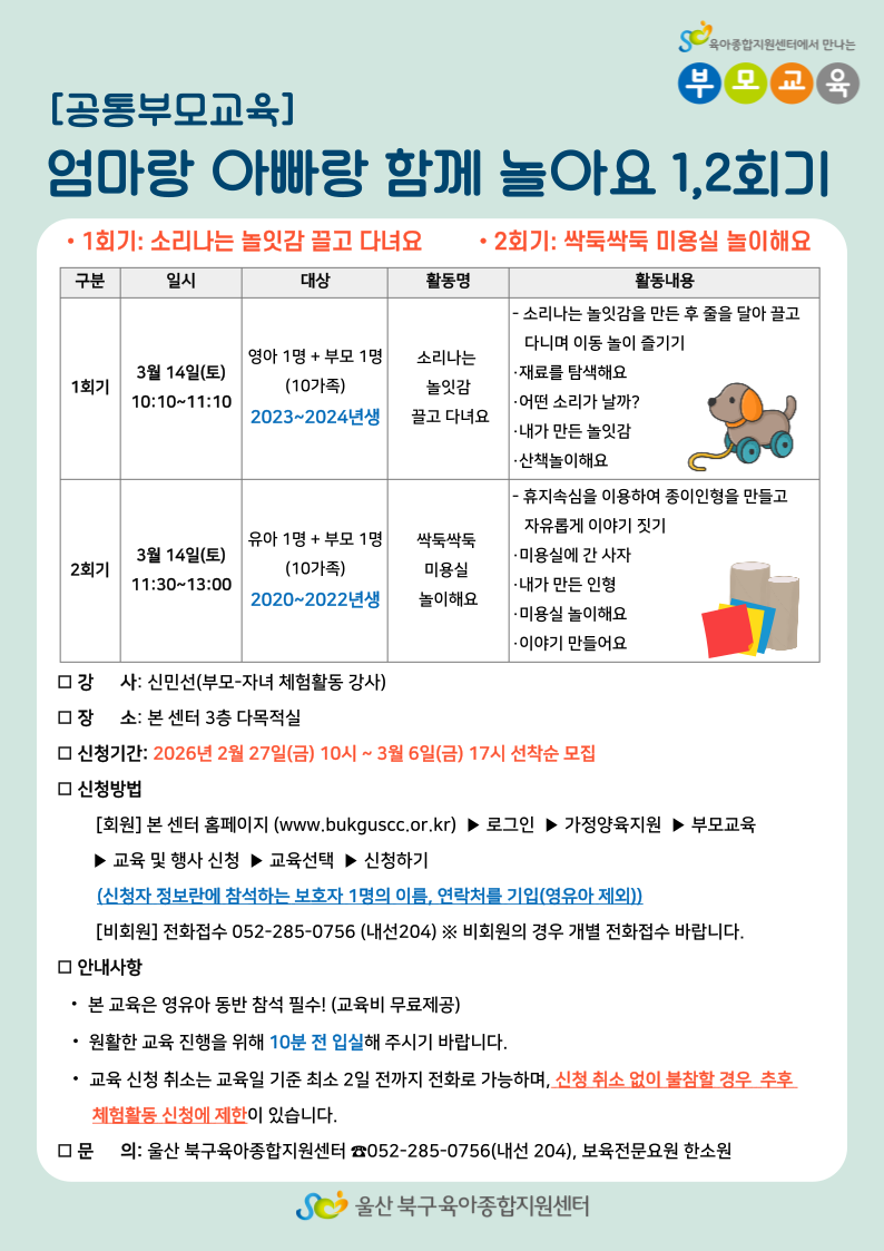 | ±âŸ»çÇ× | * º» ±³À°Àº ºÎ¸ð-ÀÚ³àüÇèȰµ¿ ±³À°ÀÔ´Ï´Ù. * º» ±³À°Àº À¯¾Æ(2020³â»ý~2022³â»ý) ±³À° ÀÔ´Ï´Ù. * ½ÅûÀÚ Á¤º¸¶õ¿¡ Âü¼®ÇÏ´Â º¸È£ÀÚ 1¸íÀÇ À̸§, ¿¬¶ôó¸¦ ±âÀÔÇØÁֽñ⠹ٶø´Ï´Ù(¿µÀ¯¾Æ À̸§ Á¦¿Ü) |