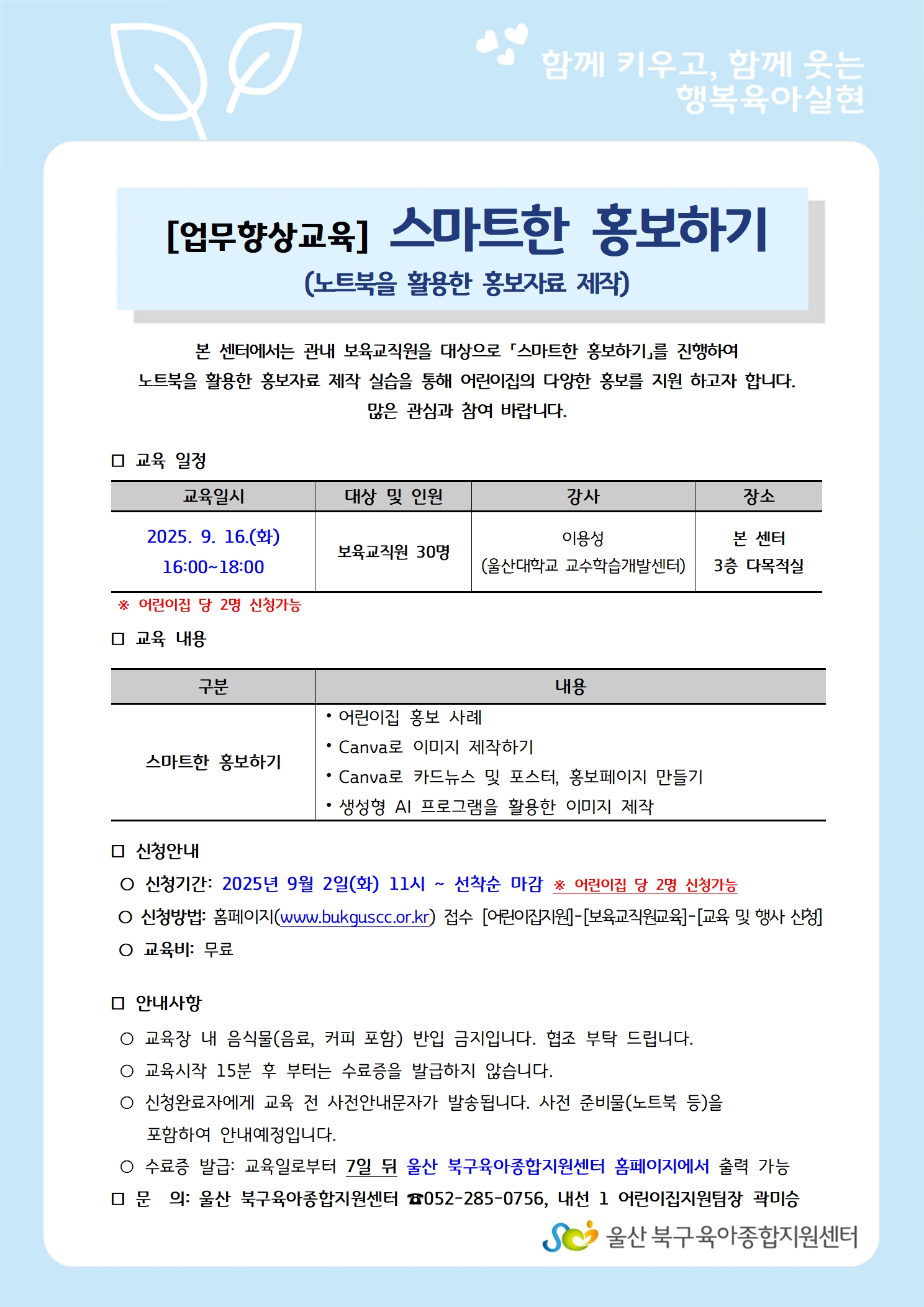 ¹®ÀÇ | 052-285-0756(³»¼±1) ¾î¸°ÀÌÁýÁö¿øÆÀÀå °û¹Ì½Â | ||