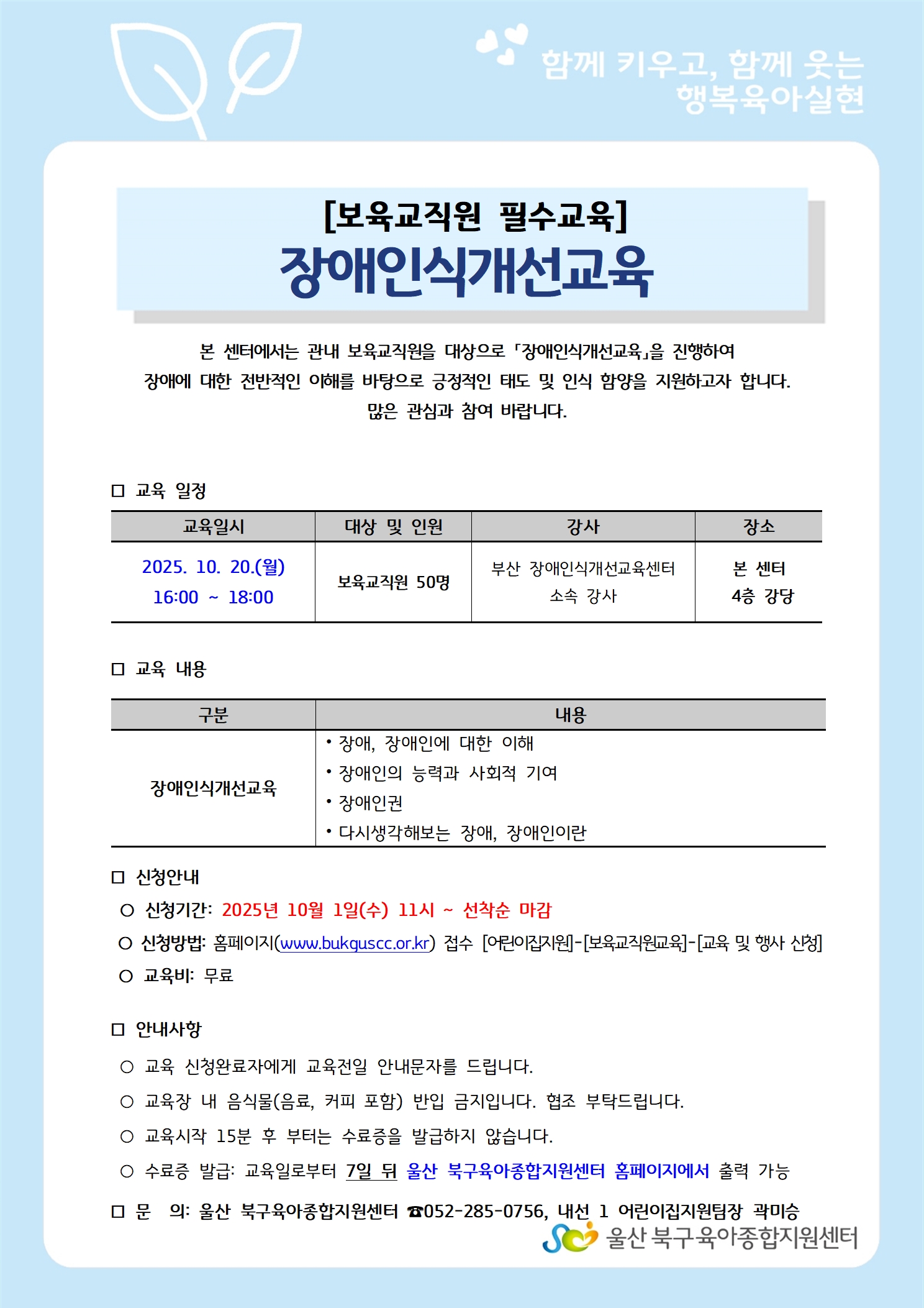 [º¸À°±³Á÷¿ø Çʼö±³À°] Àå¾ÖÀÎ½Ä °³¼±±³À° | |||